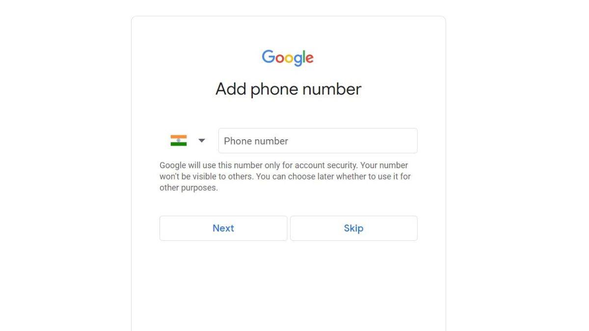 - स्टेप 8: इसके बाद फोन नंबर को जोड़ने का विकल्प आएगा। आप चाहें, तो फोन नंबर दर्ज कर सकते हैं या फिर स्किप कर आगे बढ़ सकते हैं।