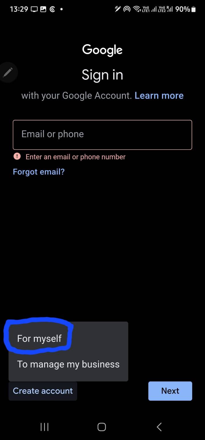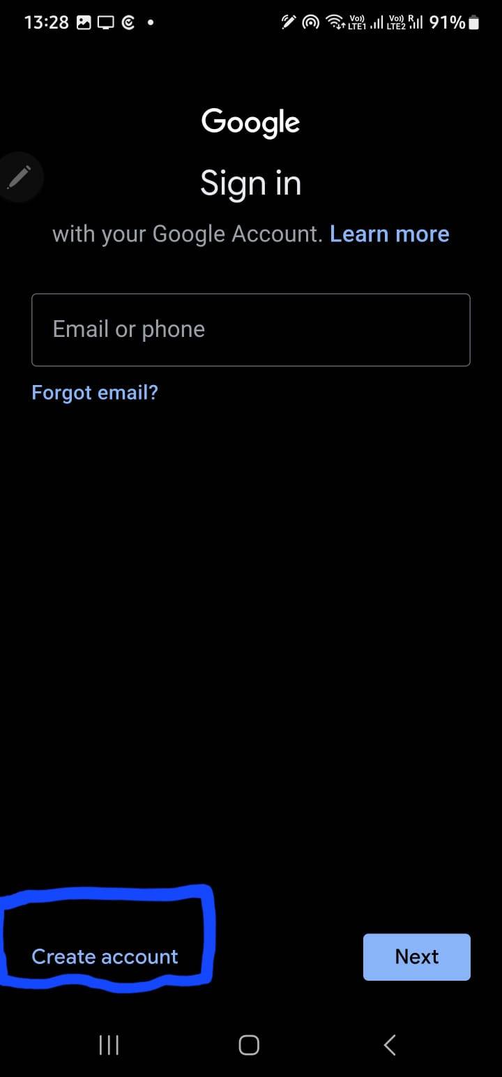 - स्टेप 4: इसके बाद गूगल साइन-इन स्क्रीन पर नीचे की तरफ ‘क्रिएट अकाउंट‘ का विकल्प दिखाई देगा, उसे सलेक्ट कर लें।